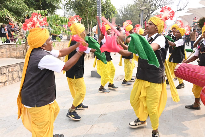 समारोह स्थल में लोक नर्तक दल द्वारा छत्तीसगढ़ के पारंपरिक नृत्य की प्रस्तुतियां