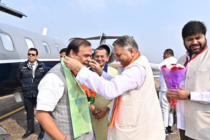 रायपुर। मुख्यमंत्री श्री विष्णुदेव साय के शपथ ग्रहण समारोह के अवसर पर हिस्सा लेने असम के मुख्यमंत्री श्री हेमंत बिस्वा शर्मा स्वामी विवेकानंद विमानतल, रायपुर पहुँचे।