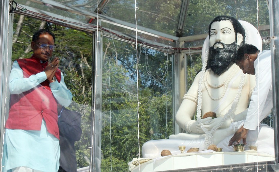 मुख्यमंत्री विष्णुदेव साय ने बाबा गुरु घासीदास की प्रतिमा पर माल्यार्पण किया
