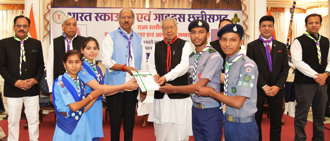 रायपुर ।भारत स्काउट्स और गाइड्स छत्तीसगढ़ द्वारा आज राज्यस्तरीय अलंकरण समारोह आयोजित किया गया। राजभवन में संपन्न हुए इस समारोह में राज्यपाल श्री विश्वभूषण हरिचंदन ने राज्य के सर्वश्रेष्ठ स्काउटर, गाइडर, रोवर, रेंजर, एवं स्काउट-गाइड को राज्यपाल पुरस्कार से सम्मानित किया। सभी को प्रमाण पत्र के साथ 10-10 हजार रूपए की राशि राज्यपाल की ओर से प्रदान की गई।