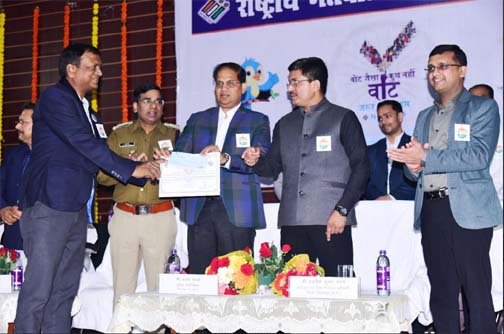 मतदाता सूची का विशेष संक्षिप्त पुनरीक्षण कार्यक्रम के तहत उत्कृष्ट कार्य करने वाले प्रत्येक विधानसभा से एक बीएलओ को 6 हजार रू. प्रोत्साहन राशि का चेक एवं प्रशस्ति पत्र देकर सम्मानित किया गया। मतदाता जागरूकता के क्षेत्र में उत्कृष्ट कार्य के लिए जिला स्तरीय पुरस्कार से अटल बिहारी विश्वविद्यालय के एनएसएस प्रभारी श्री मनोज सिन्हा को सम्मानित किया गया। सभी रिटर्निंग आफिसर और सहायक रिटर्निंग आफिसर समेत अन्य उत्कृष्ट कार्य करने वाले अधिकारी कर्मचारियों को भी सम्मानित किया गया। साथ ही नये युवा मतदाताओं को ईपिक कार्ड दिया गया।