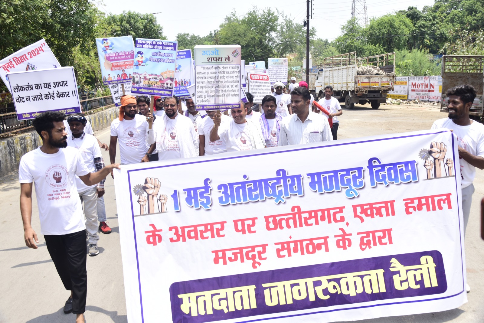 बिलासपुर / अंतर्राष्ट्रीय मजदूर दिवस के अवसर पर आज मतदाताओं को जागरूक करने शहर में श्रमवीरों की रैली निकली। सीईओ जिला पंचायत और स्वीप के नोडल अधिकारी श्री आर.पी. चौहान ने रैली को हरी झंडी दिखाकर रवाना किया। रैली इमलीपारा से होते हुए नेहरू चौक में समाप्त हुई। रैली के पूर्व सीईओ जिला पंचायत श्री चौहान ने सभी श्रमिकों को लोकसभा चुनाव सहित अन्य निर्वाचनों में अपने मताधिकार का अनिवार्य रूप से उपयोग करने की शपथ दिलायी। कार्यक्रम में जिला पंचायत के पीओ श्री ओम पाण्डेय, सहायक श्रमायुक्त श्री आर.के. प्रधान सहित बड़ी संख्या में श्रमिक मौजूद थे।