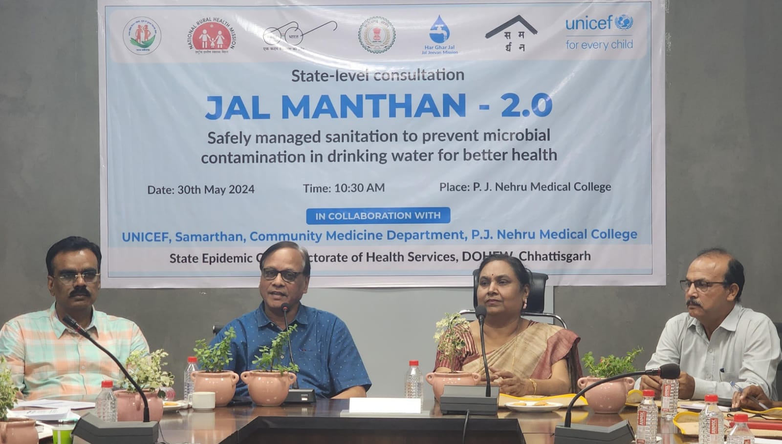रायपुर.। सामुदायिक स्तर पर स्वच्छ जल की उपलब्धता एवं गुणवत्ता के संबंध में पं.ज.ने. स्मृति चिकित्सा महाविद्यालय, रायपुर (छ.ग.) के सामुदायिक चिकित्सा विभाग में संस्था एवं यूनिसेफ के सहयोग से गुरुवार को एक दिवसीय कार्यशाला "जल मंथन 2.0" का आयोजन किया गया। इस कार्यशाला में छत्तीसगढ़ शासन के विभिन्न विभाग जैसे लोक स्वास्थ्य यांत्रिकी, स्वास्थ्य विभाग, चिकित्सा शिक्षा, नगरी प्रशासन, पंचायत इत्यादि के प्रतिनिधि शामिल हुए। कार्यशाला में स्वच्छ पेय जल की गुणवत्ता, जैविक एवं रसायनिक शुद्धता (Microbial and chemical standard), जल गुणवत्ता परीक्षण एवं दूषित पानी से होने वाले विभिन्न रोगों के संबंध में विस्तृत परिचर्चा की गई। इस परिचर्चा में विभिन्न विभागों के प्रतिभागियों ने इससे संबंधित उनके विभाग में संचालित गतिविधियों एवं अनुभवों को साझा किया तथा भविष्य की कार्ययोजना तैयार कर विभिन्न विभागों में सामंजस्य स्थापित करने हेतु सहमति बनी। इस कार्यशाला के शुभारंभ समारोह में पं.ज.ने. स्मृति चिकित्सा महाविद्यालय, रायपुर (छ.ग.) के प्रभारी अधिष्ठाता, पैथोलॉजी विभाग के विभागाध्यक्ष, डॉ. अरविंद नेरल मुख्य अतिथि थे। मुख्य अतिथि के रूप में अपने उद्बोधन में डॉ. नेरल ने कहा कि जनसमान्य लोगों में शुद्ध पेयजल की उपलब्धता मात्र से ही अनेक जल जनित रोगों में नियंत्रण किया जा सका है जो कि जल जीवन मिशन की बड़ी उपलब्धि है। फिर भी इस दिशा में और वैज्ञानिक एवं तकनीकी कार्य करने की आवश्यकता है जिससे जलजनित बीमारियों को पूर्णतः नियंत्रित किया जा सके।