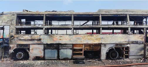 रायपुर । अभनपुर थाना क्षेत्र में जगदलपुर से रायपुर आ रही बस में आग लगने से 40 यात्रियों की जान बाल-बाल बची। बस में आग लगने की वजह एसी पाइप में ब्लास्ट होने तथा रेडिएटर वाटर के ओवर हीट की बात सामने आ रही है। घटना शनिवार सुबह 11 बजे की है। घटनास्थल पर उपस्थित पुलिस के अनुसार बस में आग लगने की वजह बस के कंडक्टर तथा ड्राइवर भी नहीं बता पा रहे हैं। बस में आग किस वजह से लगी, यह जांच के बात पता चलेगा। पुलिस के अनुसार बस में आग लगने की घटना अभनपुर मोड़ के पास की है। पूछताछ में ड्राइवर ने बताया कि कुरुद के पास बस के रेडिएटर के पास से धुंआ उठने लगा। इसके बाद बस को रोक कर रेडिएटर को ठंडा करने पानी डाला गया। कुरुद से अभनपुर के बीच बस अत्यधिक गर्म हो गई और उसमें आग लग गई। मौके पर फायर ब्रिगेड की टीम के पहुंचने से पहले बस आग की चपेट में आकर पूरी तरह से जल गई। बस में आग लगने पर उसमें सवार यात्री आनन-फानन में बस से नीचे उतरे और अपनी जान बचाई। चलती बस में आग लगने से बड़ा हादसा होने से इनकार नहीं किया जा सकता था।