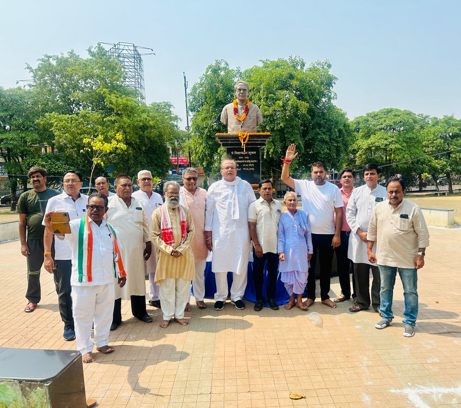 रायपुर । आज पूर्व केन्द्रीय मन्त्री शहीद पण्डित विद्याचरण शुक्ल को उनकी 11 वीं पुण्यतिथि पर राजधानी शहर में नगर निगम मुख्यालय भवन महात्मा गाँधी सदन के सामने नगर निगम उद्यान परिसर स्थित उनकी मूर्ति के समक्ष नगर निगम संस्कृति विभाग के तत्वावधान में नगर निगम जोन क्रमांक 4 के सहयोग से रखे गए संक्षिप्त आयोजन में पहुंचकर मुख्य रूप से प्रदेश के पूर्व मन्त्री श्री अमितेश शुक्ल, छग पाठ्य पुस्तक निगम के पूर्व अध्यक्ष श्री शैलेश नितिन त्रिवेदी, रायपुर नगर पालिक निगम के संस्कृति विभाग के अध्यक्ष श्री आकाश तिवारी, एमआईसी सदस्य श्री कुमार मेनन, श्री सुन्दर लाल जोगी, पूर्व पार्षद श्री रियाज अहमद, श्री मनोज कन्दोई सहित नगर के गणमान्य जनों, सामाजिक कार्यकर्त्ताओं, नवयुवकों ने मूर्ति स्थल पर पहुंचकर पूर्व केन्द्रीय मन्त्री शहीद पण्डित विद्याचरण शुक्ल को उनकी 11 पुण्यतिथि पर सादर नमन करते हुए श्रद्धांजलि अर्पित की.