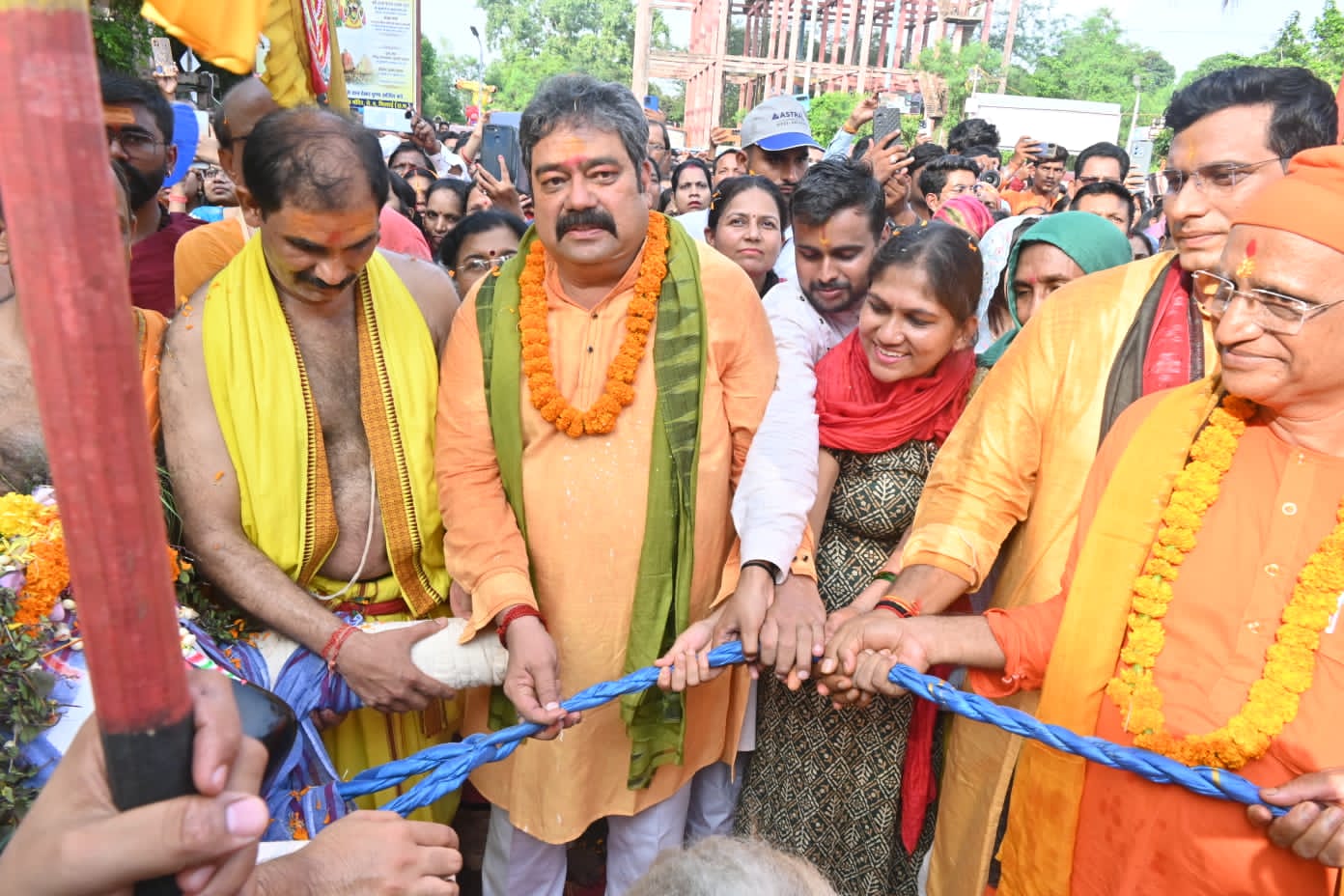 नगर के कल्याण के लिए विधायक महापौर ने जगन्नाथ प्रभु के रथ को खींचे