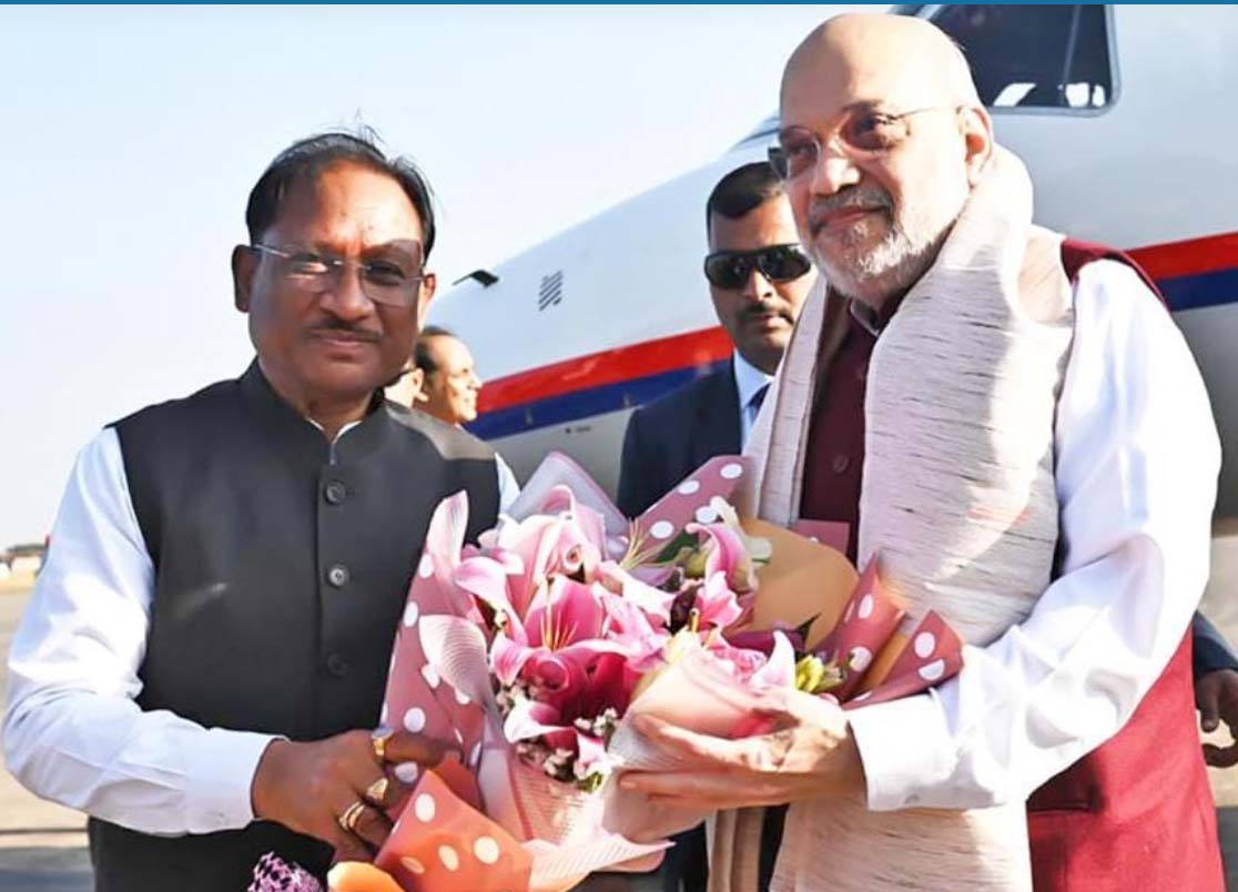 तीन दिवसीय छत्तीसगढ़ दौरे पर पहुंचे केंद्रीय गृह एवं सहकारिता मंत्री अमित शाह