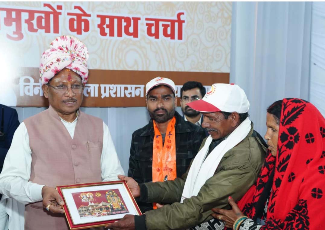 रायपुर ।मुख्यमंत्री श्री विष्णु देव साय ने कोरिया प्रवास के दौरान झुमका जलाशय परिसर में ‘श्री रामलला दर्शन योजना’ के तहत अयोध्या धाम की पावन यात्रा कर लौटे श्रद्धालुओं से आत्मीय भेंट की। मुख्यमंत्री ने श्रद्धालुओं का हाल-चाल जाना और उनके आध्यात्मिक एवं भक्तिमय अनुभवों को बड़े ध्यानपूर्वक सुना। श्रद्धालुओं ने मुख्यमंत्री को बताया कि छत्तीसगढ़ शासन के सहयोग से उन्हें निःशुल्क अयोध्या धाम के दर्शन का सौभाग्य प्राप्त हुआ। उन्होंने कहा कि शासन द्वारा सम्मानपूर्वक यात्रा की समुचित व्यवस्था किए जाने से यह यात्रा उनके लिए अत्यंत सहज और अविस्मरणीय बन गई।