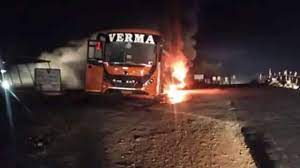 बस में आग लगी, 60 यात्री बाल-बाल बचे