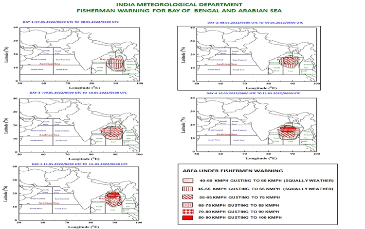 आईएमडी ने कहा कि ओडिशा के तटीय जिलों और पश्चिम बंगाल की राजधानी कोलकाता सहित राज्य के दक्षिणी हिस्से में मंगलवार से हल्की से मध्यम बारिश होने की आशंका है। मछुआरों को सलाह दी गई है कि वे 10 मई से अगली सूचना तक समुद्र में और पश्चिम बंगाल एवं ओडिशा के तटों पर नहीं जाएं। मौसम विभाग के अनुसार, ओडिशा तट के पास समुद्र की स्थिति नौ मई को खराब और 10 मई को अत्यधिक खराब हो जाएगी। समुद्र में हवा की गति 10 मई को बढ़कर 80 से 90 किलोमीटर प्रति घंटा होने का अनुमान है।