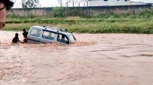 अचानक बाढ़ आने से कई वाहन बहे