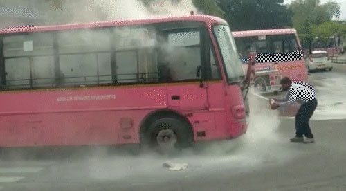 मौके पर ड्यूटी दे रहे ट्रैफिक जवान रमेश ने बताया कि बस में आग लगने पर उसने सबसे पहले बस ट्रैफिक रोका। जिससे कोई बड़ी घटना सड़क पर ना हो जाए। वहीं दमकल को फोन कर घटना की जानकारी दी जिससे दमकल जल्द मौके पर पहुंचे। दमकल पहुंचने से पहले ही बस ड्राईवर ने बस में रखे फायर फाइटिंग सिस्टम से आग पर काबू पा लिया।