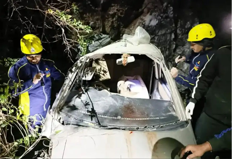 खाई में गिरी कार, तीन महिलाओं समेत चार की मौत, दो घायल