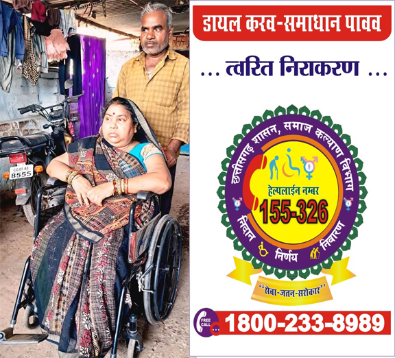 गौरतलब है कि समाज कल्याण विभाग द्वारा वृद्धजनों, दिव्यांगजनों व तृतीय लिंग के व्यक्तियों की सहायता के लिए टोल फ्री नंबर 155-326 व हेल्पलाइन नंबर +91-1800-233-8989 जारी किया गया है। इस नई सुविधा से महतारी एक्सप्रेस-102, मेडिकल हेल्पलाइन 104 और आपातकालीन सेवाओं के लिए जारी नंबर 112 को भी जोड़ दिया गया है। इन नंबरों में डायल कर हितग्राही अपनी समस्याओं व मांगों से विभाग को अवगत करा सकते हैं। हेल्पलाइन सेंटर द्वारा इनकी समस्याओं को संबधित जिले को ऑनलाइन भेजकर त्वरित कार्यवाही करने कहा जाता है। धमतरी जिले को प्राप्त प्रकरण पर त्वरित कार्रवाई करते हुए उक्त तीनों दिव्यांगों को इनके आने जाने की समस्या को देखते हुए, घर पहुँचकर आवश्यक दस्तावेज लेकर निःशुल्क व्हीलचेयर वितरित की गई। हेल्पलाईन और टोल फ्री नम्बर के माध्यम से विभागीय योजनाओं की जानकारी के साथ आपातकालीन सेवाएं, परामर्श, शिकायत, पेंशन भुगतान के निराकरण जैसी कई मदद ली जा सकती है।