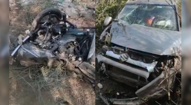 मोटरसाइकिल और कार की टक्कर में एक परिवार के चार लोगों की मौत