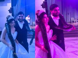 गले में लंबा सा अजगर लटका कर दूल्हा-दुल्हन पहुंचे मेहमानों के सामने,.....