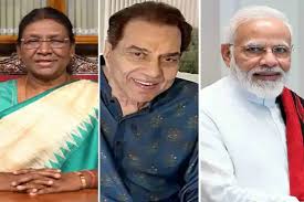 नयी दिल्ली. राष्ट्रपति द्रौपदी मुर्मू, उप राष्ट्रपति सी पी राधाकृष्णन, प्रधानमंत्री नरेन्द्र मोदी तथा कई अन्य वरिष्ठ नेताओं ने सोमवार को दिग्गज अभिनेता धर्मेंद्र के निधन पर दुख जताया और कहा कि उनके जाने से एक युग का अंत हो गया है तथा उनकी विरासत कलाकारों की युवा पीढ़ी को हमेशा प्रेरित करती रहेगी। धर्मेंद्र ने सोमवार को मुंबई स्थित अपने आवास पर अंतिम सांस ली। वह 89 वर्ष के थे।