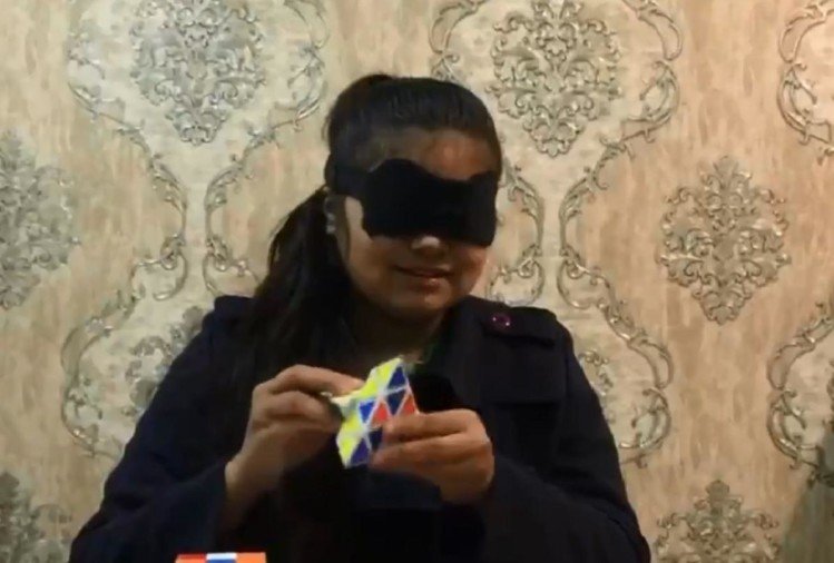 13 साल की इस अनोखी बच्ची का कमाल.. आंख पर पट्टी बांध कर भी सुलझा देती है रुबिक क्यूब