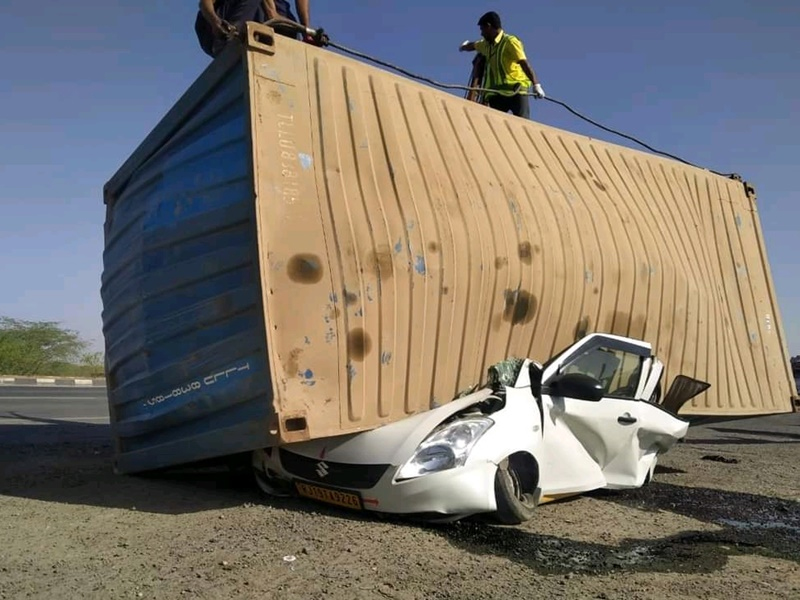 कार पर गिरा मार्बल से भरा कंटेनर, महिला समेत 4 की मौत