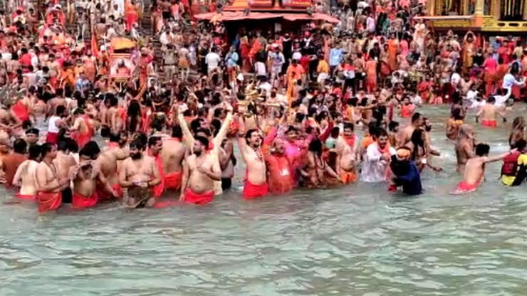 महाकुंभ में मेष संक्रांति, बैसाखी के मुख्य शाही स्नान में लाखों ने लगाई डुबकी