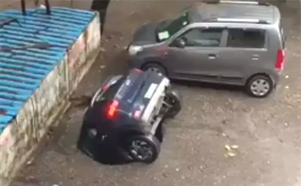 कंक्रीट के फर्श में गड्ढा होने से पानी में डूबी पूरी कार, वीडियो वायरल