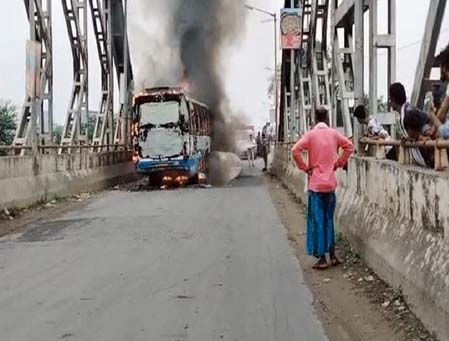 पूर्णिया। पूर्णिया शहर के खुश्कीबाग स्थित रेलवे ओवर ब्रीज पर शनिवार सुबह चलती बस में अचानक आग लग जाने से इलाके में अफरातफरी मच गई। देखते ही देखते बस धूं-धूं कर जलने लगी। बताया जा रहा है कि किशनगंज से पूर्णिया के लिए बस जा रही थी। रेलवे ओवरब्रिज पर पहुंचे ही इंजन में अचानक आग लग गई। ड्राइवर ने बस को ओवरब्रिज पर ही रोक दिया। आग लगते ही यात्रियों के बीच कोहराम मच गया। कुछ पैसेंजर्स ने जैसे-तैसे बस से उतर कर और कुछ ने खिड़की से कूद अपनी जान बचाई। ड्राइवर ने बस में लगी बैटरी को निकाल कर बाहर फेंक दिया। बस में आग लगती देख रेलवे रैक प्वाइंट पर काम कर रहे मजदूर और आसपास के लोग जुट गए। सूचना देने के 20 मिनट बाद अग्निशमन विभाग की दो गाड़ी और सदर थाना पुलिस मौके पर पहुंची, तब तक पूरी बस जलकर राख हो गई थी। लोगों ने बताया कि बस में करीब 15 लोग सवार थे। सभी को सुरक्षित बाहर निकाल दिया गया। यात्री जान बचाकर बाहर तो निकल गए, लेकिन उनका सामान अंदर ही जलकर नष्ट हो गया। अग्निशमन पदाधिकारी महेश कुमार यादव ने बताया- आग पर काबू पा लिया गया है। बस में सवार सभी यात्री सुरक्षित हैं।