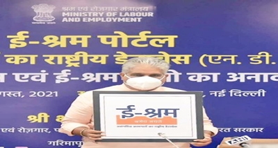 नई दिल्ली। श्रम और रोजगार मंत्री भूपेन्द्र यादव ने आज नई दिल्ली में असंगठित कामगारों के राष्ट्रीय डेटाबेस - ई-श्रम पोर्टल का शुभारंभ किया। इस पोर्टल पर देश के असंगठित क्षेत्र के कामगारों का विवरण दिया जाएगा। इससे कामगारों के लिए विभिन्न सामाजिक सुरक्षा योजनाओं के बेहतर कार्यान्वयन की सुविधा उपलब्ध हो सकेगी।श्री यादव ने इस अवसर पर कहा कि प्रधानमंत्री नरेन्द्र मोदी की परिकल्पना के अनुरूप यह पोर्टल देश में असंगठित क्षेत्र के कामगारों का सर्वांगीण कल्याण सुनिश्चित करेगा। उन्होंने बताया कि संसद में भी इस पोर्टल की मांग की गई थी। श्री भूपेन्द्र यादव ने कहा कि सरकार के पास देश के विभिन्न क्षेत्रों के असंगठित कामगारों का, आधार आधारित डेटाबेस होगा। इस पर पंजीकरण की प्रक्रिया काफी सरल रखी गई है।
