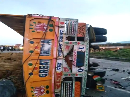 दो ट्रेलर के बीच दबी कार, कार में फंसे पांच युवक, 4 की मौत