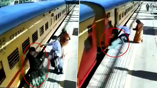 चलती ट्रेन में चढ़ने की कोशिश में गिरी बुजुर्ग महिला को यात्रियों ने बचाया
