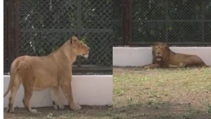 दिल्ली के चिड़ियाघर में गुजरात से एक शेर और दो शेरनियां लाई गईं