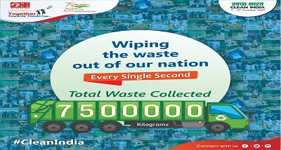 स्वच्छ भारत अभियान के अंतर्गत अब तक देशभर से 75 लाख किलो कचरा उठाया गया