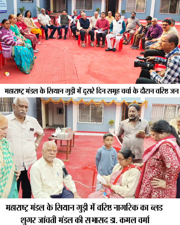 महाराष्ट्र मंडल के समन्वयक श्याम सुंदर खंगन ने बताया कि दूसरे दिन मंडल की सभासद दिव्या पात्रीकर और संध्या खंगन ने वरिष्ठजनों को योग अभ्यास कराया। 30 मिनट के इस सेशन में योग की कई क्रियाकलापों का अभ्यास कराया गया। वहीं सुमिता रायजादा और रचना ठेंगड़ी ने रोचक गेम खिलाए। इनमें एक गेम में अखबार के पन्नों को कई भागों में फाड़कर टेबल पर फैला दिया। अब एक-एक वरिष्ठजन क्रमशः फूंक मारकर उसे उड़ा रहे हैं। इस एक्टिविटी से वरिष्ठजनों को अपने ब्रीदिंग पावर को जांचने का मौका मिला।डा. कमल वर्मा ने बताया कि ब्रीदिंग एक्टिविटी से शरीर में आक्सीजन का प्रवाह बढ़ता है और ऊर्जा महसूस होती है। यह फेफड़ों की क्षमता बढ़ाता है और हृदय स्वास्थ्य को बेहतर बनाता है। डा. कमल वर्मा ने सभी को स्वास्थ्गत टिप्स देने के साथ प्रेरक कविता भी सुनाई। लंच के पूर्व सभी सदस्यों के ब्लड प्रेशर की जांच भी की गई। इस बीच सुमिता और रचना ने सभी को अंताक्षरी खिलवाई। इसमें सभी ने नए- पुरानों फिल्मी गीतों के साथ समां बांधे रखा।खंगन के अनुसार पंडित रविशंकर शुक्ल विश्वविद्यालय के रिटायर्ड कर्मचारी-अधिकारी के साथ अन्य कई बुजुर्ग यहां पहुंचे थे। इसमें प्रदीप मिश्रा, सुरेंद्र कुमार वर्मा, अभय राम साहू, महेश सिंह ठाकुर, गंगा वर्मा, राकेश शुक्ला, अलखराम साहू, कृष्ण कुमार वर्मा सहित अनेक बुजुर्ग शामिल रहे। वहीं विजय दम्मानी, रमाशंकर पांडेय, संतोष शर्मा दूसरे दिन लगातार सियान गुड़ी पहुंचे। इसके साथ ओमप्रकाश सोनी, गोपाल प्रसाद जोशी, राकेश श्रीवास्तव, कौशल गुप्ता, ओपी भांगला सहित अनेक वरिष्ठ नागरिक शामिल रहे। - -रायपुर नगर निगम जोन 8 राजस्व विभाग द्वारा कई वर्षों से बकाया राशि जमा नहीं कर रहे 7 बड़े बकायादारो द्वारा डिमांड बिल डिमांड नोटिस और अंतिम नोटिस के बाद भी बकाया अदा नहीं करने पर सम्बंधित-वार्ड 70 में रायपुरा में बड़े बकायादार का पुष्प वाटिका मैरिज गार्डन 45 लाख 99 हजार 952 रूपये का बकाया नगर निगम को अदा नहीं किये जाने पर तत्काल किया गया सीलबंद0-कुल रू. 71 लाख 1056 का संबंधित 7 बड़े बकायादारो पर शेष बकाया वसूलने रायपुर नगर निगम जोन 8 राजस्व विभाग द्वारा कड़ी कार्यवाहीरायपुर/रायपुर नगर पालिक निगम के आयुक्त श्री विश्वदीप के आदेशानुसार और उपायुक्त राजस्व श्रीमती जागृति साहू और जोन 8 जोन कमिश्नर श्रीमती राजेश्वरी पटेल के निर्देशानुसार एवं जोन 8 सहायक राजस्व अधिकारी श्री महादेव रक्सेल के नेतृत्व और राजस्व निरीक्षक श्री राजेश मिश्रा, सहायक राजस्व निरीक्षक सर्वश्री खगेंद्र सोनी, राम कुमार अवसर, चंदन रगड़े की उपस्थिति में नगर पालिक निगम जोन 8 की राजस्व विभाग टीम द्वारा जोन 8 अंतर्गत संत रविदास वार्ड क्रमांक 70 और वीर सावरकर नगर वार्ड कमा