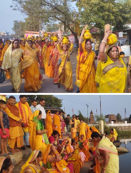 - 22 दिसंबर तक चलेगा नौ कुंडीय गायत्री महायज्ञ- लोक जागरण की दिशा में प्रयास, धरोहरों और संस्कृति के संरक्षण पर जोरधमधा। 126 तालाबों के लिये प्रसिद्ध ऐतिहासिक धमधा नगर में कलश यात्रा के साथ गायत्री महायज्ञ प्रारंभ हुई। वौदिक मंत्रोच्चारण के साथ देव स्थापना की गई। बूढ़ा तालाब शीतला मंदिर में गंगा आरती के साथ कलश में जल भर यज्ञ स्थल लाया गया। जगह जगह लोगों ने कलश यात्रा में पुष्प वर्षा भी की।गायत्री तीर्थ शांतिकुंज हरिद्वार के मार्गदर्शन में गायत्री साधना केंद्र रिसाली भिलाई के टोली नायक महेंद्र वर्मा, युग गायक पृथ्वीपाल साहू, हारमोनियम वादक पन्नालाल वर्मा एवंतबला वादक सुनील दास ने सर्वप्रथम सुगम युग गायन के साथ कलश यात्रा को रवाना किया। साहू पारा की भजन मंडली मोहन लाल साहू, टोपू सिन्हा सहित वादक भजन गाते हुए आगे चल रहे थे। पीले वस्त्र में महिलाएं कलश लेकर जयघोष करते हुए आगे बढ़ रही थीं। कलश यात्रा गायत्री मंदिर से सोनकर पारा, साहू पारा, कलार पारा, चौखड़िया तालाब होते हुए शीतला मंदिर पहुंचीं, वहां पूजा अर्चना के साथ कलश में जल भरकर यात्रा बूढ़ा तालाब से जयस्तंभ चौक, हटरी बाजार, ढीमर चौक, बजरंग चौक, बस स्टैंड होते हुए गायत्री मंदिर पहुंची। इसके बाद देव आह्वान कर आरती की गई। इस अवसर पर राधेलाल ताम्रकार, राजेंद्र गुप्ता, उमेश सोनी, सुजीत ताम्रकार, चंद्रेश यादव, शिवकुमार राठौर, खोमन पटेल, बीरेंद्र सोनी, ऊषा केसरा, सुरेंद्र सोनी, मुखराज किशोर यादव शामिल थे।गायत्री परिवार के परिव्राजकों ने कहा कि गायत्री परिवार का आयोजन उत्सव के लिये नहीं किसी प्रयोजन के लिये होता है। हमारा उद्देश्य है मानव में देवत्व का जागरण हो। भली सोच अच्छे कार्य करने वाले हों। घर घर में यज्ञ हो एवं तुलसी की स्थापना हो। इन उद्देश्य के लिये सबका सहयोग आवश्यक है।यज्ञ एवं संस्कार में हर कोई होगा शामिलआयोजन समिति के संयोजक वीरेंद्र देवांगन ने बताया कि 22 दिसंबर को रोज सुबह 9 बजे से यज्ञ होगा, जिसमें मुख्य यजमान के साथ हर कोई आहूति दे सकेगा। इसके अलावा पुंसवन संस्कार, नामकरण संस्कार, मुंडन संस्कार, विद्याआरंभ संस्कार, जन्मदिवस संस्कार व दीक्षा संस्कार भी होंगे, जिसके लिए पूर्व से समिति में पंजीयन करना होगा।विनीतगायत्री परिवार धमधाधर्मधाम गौरवगाथा समिति धमधामो. 9098771123, 9893172336