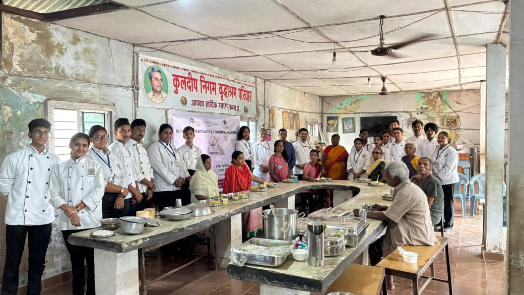 - रायपुर / छत्तीसगढ़ के प्रथम कुलदीप निगम वृद्धाश्रम माना कैम्प में ITM विश्वविद्यालय रायपुर के होटल मैनेजमेंट में अध्ययन रत विद्यार्थियों का एक समूह वृद्धाश्रम में निवासरत बुजुर्गों से मिलकर आज उन्हें भोजन करवाया और मिठाई का वितरण किया गया , साथ ही सूखा अनाज भी प्रदान किया गया।विद्यार्थियों ने दीपावली के पूर्व सामाजिक सरोकार के दृष्टिकोण से असहाय निराश्रित बुजुर्गो से मिलकर उन्हें कुछ पल की खुशियां बाटी। इस अवसर पर अनीश बैनर्जी, डॉ अमिय जानी, गुंजन सिंहा छात्र छात्राओं का समूह वृद्धाश्रम की वार्डन पारूल चक्रवर्ती लीला यादव उपस्थित रहे।