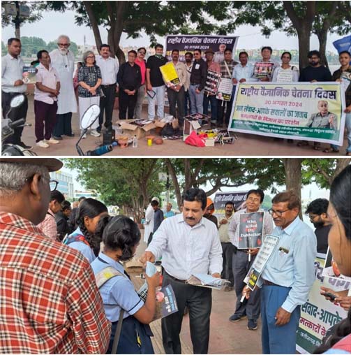 -राष्ट्रीय वैज्ञानिक चेतना दिवस आयोजितरायपुर। राष्ट्रीय वैज्ञानिक चेतना दिवस के अवसर पर तेलीबांधा तालाब मेरिन डाईव में जागरूकता कार्यक्रम आयोजित किया गया। इस मौके पर तथाकथित चमत्कारों के वैज्ञानिक प्रदर्शन,नागरिकों एवम विद्यार्थियों को अंधविश्वास निर्मूलन से संबंधित किताबें , पंपलेट वितरित किए गए।छत्तीसगढ़ विज्ञान सभा, तर्कशील, सहित सहयोगी संगठनों के द्वारा आयोजित इस कार्यक्रम में डॉ. नरेंद्र दाभोलकर को श्रद्धांजलि दी गई।इस मौके पर अंधश्रद्धा निर्मूलन समिति के अध्यक्ष डॉ. दिनेश मिश्र ने कहा कि देश में अंधविश्वासों व सामाजिक कुरीतियों के कारण प्रतिवर्ष हज़ारों लोग प्रताडऩा के शिकार होते हैं। वर्तमान में वैज्ञानिक जागरूकता की अत्यन्त आवश्यकता है . जिसके लिए लगातार अभियान चलाए जाने की जरूरत है ,जिससे लोगों के बसे अंधविश्वास व सामाजिक कुरीतियां हटाई जा सकेंगी।विज्ञान सभा के अध्यक्ष विश्वास मेश्राम ने कार्यक्रम के आयोजन की जानकारी दी । तर्कशील परिषद के डॉ आर.के. सुखदेवे ने कथित चमत्कारों का वैज्ञानिक प्रदर्शन किया और चमत्कारों की वैज्ञानिक सत्यता बताई । संजीव खुद शाह ने वास्तुशास्त्र से जुड़े अंधविश्वासों की जानकारी दी। आयोजन को अंजू मेश्राम , निसार अली ने भी संबोधित किया । कार्यक्रम में आई .एम. ए. अध्यक्ष डॉ. राकेश गुप्ता, उमाशंकर ओझा, अधीर , जयश्री भगवानानी, सहित अनेक नागरिक और स्कूली छात्र उपस्थित थे। कार्यक्रम में नागरिकों व छात्रों को अंधश्रद्धा निर्मूलन संबंधित किताबें, पंपलेट वितरित किए गए। साथ ही आम लोगों की जिज्ञासा का समाधान भी किया गया। - रायपुर । मुख्यमंत्री श्री विष्णुदेव साय के सुशासन में नए राशन कार्ड बनाए जा रहे हैं। विकासखंड अभनपुर के टीकरी हसदा निवासी श्री दोमेश कुमार साहू ने राशनकार्ड में अपने मृत पिता का नाम कटवाने का आवेदन दिया था। साथ ही नया राशन कार्ड बनाने भी आवेदन दिया था। लेकिन उनका राशन कार्ड बन नहीं रहा था। जिसकी वजह से उन्हें राशन भी नहीं मिल पा रहा था। इसी को लेकर श्री साहू ने जिला प्रशासन के जनसमस्या निवारण कॉल सेंटर में फोन की और अपनी समस्या दर्ज कराई। तभी उनकी समस्या को दर्ज करने के बाद संबंधित विभाग को दी गई और तत्काल मदद की प्रक्रिया शुरू की गई। जिसके बाद उनका नया राशन कार्ड मिल गया। समस्या का समाधान होने पर आवेदक श्री दोमेश कुमार साहू काफी प्रसन्न है और उन्होंने मुख्यमंत्री श्री विष्णुदेव साय के प्रति आभार भी जताया।
