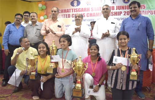रायपुर। ""छत्तीसगढ़ प्रदेश शतरंज संघ तथा खेल एवं युवा कल्याण विभाग के संरक्षण में रायपुर जिला शतरंज संघ तथा विप्र भवन प्रबंधन समिति के संयुक्त तत्वाधान"" में आयोजित अंडर 15 बालक एवम बालिका चयन एवम फिडे रेटिंग प्रतियोगिता का समापन 18 अगस्त को शाम 5 बजे बजे विप्र भवन समता कॉलोनी में हुआ पुरुस्कार वितरण में मुख्य अतिथि रायपुर उत्तर विधानसभा के विधयक श्री पुरन्दर मिश्रा जी थे विशेष अतिथि के रूप में रायपुर नगर निगम के सभापति श्री प्रमोद दूबे जी ,रायपुर नगर निगम लोक कर्म विभाग के अध्यक्ष श्री ज्ञानेश शर्मा जी , प्रदेश शतरंज संघ के महासचिव श्री विनोद राठी जी एवम मितान के संस्थापक सदस्य श्री रामअवतार तिवारी जी थे।इस स्पर्धा में प्रदेश के हर सम्भाग से कुल169 प्रतिभागियो ने हिस्सा लिया जिसमे रायपुर के अलावा बस्तर,सरगुजा,कवर्धा, महासमुंद,दुर्ग,भिलाई,जगदलपुर राजनांदगांव ,धमतरी,शक्ति, रायगढ़ ,बिलासपुर ,चाम्पा समेत छत्तीसगढ़ के सुदूर हिस्सो से खिलाड़ियों ने भाग लियाइस प्रतियोगिता के मुख्य निर्णायक पाटन से आये फिडे ऑर्बिटर श्री रोकी देवांगन थे उनके साथ प्रतियोगिता में सहायक निर्णायक के रूप में चार सीनियर नेशनल ऑर्बिटर थे जिसमे रायपुर से श्री अनूप झा एवम श्रीमती हेमा नागेश्वर ,दुर्ग से दिव्यांशु उपाध्याय एवं महासमुंद से चंदन विश्वकर्मा थे।इनके अलावा दो स्टेट आर्बिटर संदीप पटले महासमुंद से तथा अभिनव पांडे बिलासपुर से थे।प्रतियोगिता में कुल 34 हजार रुपये कैश प्राइज के अतिरिक्त लगभग 28 मोमेंटो और 169 मेडल प्रतिभागियों को पुरुस्कार स्वरूप प्रदान किये गए।यह पूरा आयोजन प्रदेश शतरंज संघ के महासचिव श्री विनोद राठी जी के संरक्षण में सम्पन्न हुआ एवम आयोजन समिति में एम चंद्रशेखर(उपाध्यक्ष छ ग प्रदेश शतरंज संघ) , आशुतोष शर्मा(अध्यक्ष रायपुर जिला शतरंज संघ) , नवीन शुक्ला(सचिव रायपुर जिला शतरंज संघ) ,विकास शर्मा ,रोहित यादव ,आनंद अवधिया, संदीप दीवान , गौरव दीवान,विवेक दुबे,अशोक दुबे ,पूनदास पाटले ,राघव शुक्ला,शिवांश शुक्ला,दीपक दीवान, एवम मोहम्मद लतीफ और रायपुर जिला शतरंज संघ के सभी सदस्य शामिल थे।ओपन वर्ग में 9 चक्र में 8अंक प्राप्त करके कोरबा के प्रभमन मल्होत्रा ने खिताब अपने नाम किया फाइनल राउंड में उन्होंने रायपुर के आलोक से ड्रॉ खेला।,और टाईब्रेक के आधार पर विजेता बनेदूसरे स्थान पर वनेध खटवा (दुर्ग)8अंक रहे एवं तीसरे और चौथे स्थान पर क्रमशः आलोक कन्नौजे व औजस्य मोहता (रायपुर )रहे,पांचवे और छठे स्थान पर क्रमश ईशान सैनी (दुर्ग) व अभिनव वर्मा रहें।वही बालिका वर्ग में रायपुर की तनीशा ड्रोलिया ने 6.5 अंक के साथ खिताब अपने नाम किया, दूसरे, तीसरे और चौथे स्थान पर क्रमशः राशि वरुढकर ,इशिका व जसमन कौर रह