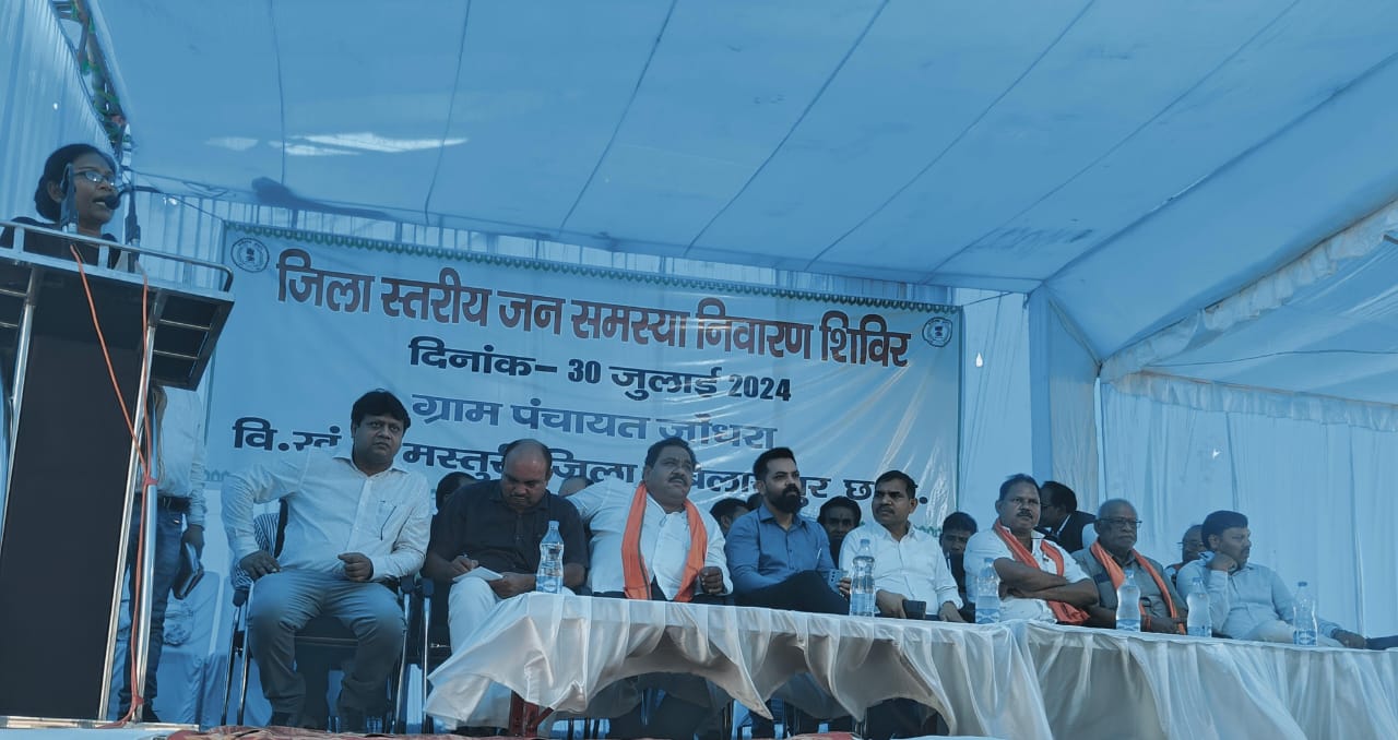 बिलासपुर /ग्रामीणों की समस्याओं और मांगों के निराकरण के लिए राज्य शासन के निर्देश पर जिला स्तरीय जनसमस्या निवारण शिविर आयोजित किया जा रहा है। इसी क्रम में सोमवार को मस्तूरी ब्लॉक के ग्राम पंचायत जोंधरा में हाई स्कूल मेैदान में शिविर लगाया गया। जिसमें गांवों के स्थानीय नागरिक सहित आस-पास के गांवों के लोगों के आवेदनों और समस्याओं का निराकरण किया गया। शिविर में ग्रामीणों की मांग और शिकायतों से संबंधित 168 आवेदन मिले, इनमें से मौके पर ही 121 आवेदनों का निराकरण किया गया। विभागों द्वारा विभागीय योजनाओं के संबंध में ग्रामीणों को जानकारी दी गई। शिविर में महतारी वंदन योजना के हितग्राहियों को निःशुल्क पौधे भी बांटे गए। मौसमी बीमारियों से बचाव के उपाय भी स्वास्थ्य विभाग द्वारा ग्रामीणों को बताए गए। शिविर में विधायक श्री दिलीप लहरिया ने भी ग्रामीणों को संबोधित किया। इस अवसर पर सीईओ जिला पंचायत श्री आरपी चौहान, एडीएम श्री शिव कुमार बनर्जी, एसडीएम श्री अमित कुमार सिन्हा, श्री विजय अंचल सहित अन्य जनप्रतिनिधि, विभागीय अधिकारी और बड़ी संख्या में ग्रामीण मौजूद थे।