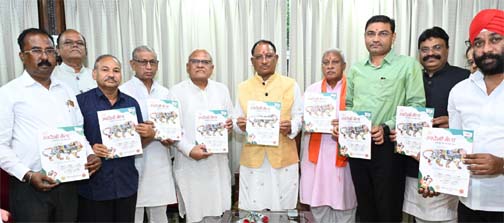 रायपुर / मुख्यमंत्री श्री विष्णु देव साय ने शनिवार को यहाँ अपने निवास कार्यालय में छत्तीसगढ़ के विभिन्न जिलों में भारतीय विपणन विकास केंद्र द्वारा आयोजित होने वाले 'स्वदेशी मेला' की विवरणिका (ब्रोशर) का विमोचन किया। मुख्यमंत्री ने प्रतिनिधिमंडल को कार्यक्रम के आयोजन के लिए शुभकामनाएं दीं।
