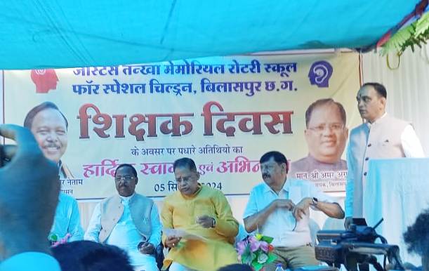 बिलासपुर /कृषि तथा आदिम जाति एवं अजा विकास मंत्री श्री राम विचार नेताम के मुख्य आतिथ्य में जस्टिस तनखा मेमोरियल रोटरी स्कूल फार स्पेशल चिल्ड्रन में शिक्षक दिवस मनाया गया। श्री नेताम ने इस अवसर पर स्कूल के शिक्षकों कों शाल एवं श्रीफल से सम्मानित किया। उन्होंने कहा कि भूतपूर्व राष्ट्रपति भारत रत्न डॉ. सर्वपल्ली राधाकृष्णन की जयंती को शिक्षक दिवस के रूप में मनाते हैं। कार्यक्रम की अध्यक्षता विधायक श्री अमर अग्रवाल ने की। मंत्री श्री नेताम ने स्कूल को 1 लाख रूपये की मदद की घोषणा की। उन्होंने स्वेच्छानुदान मद से 11 हजार रूपये भी दिए।
