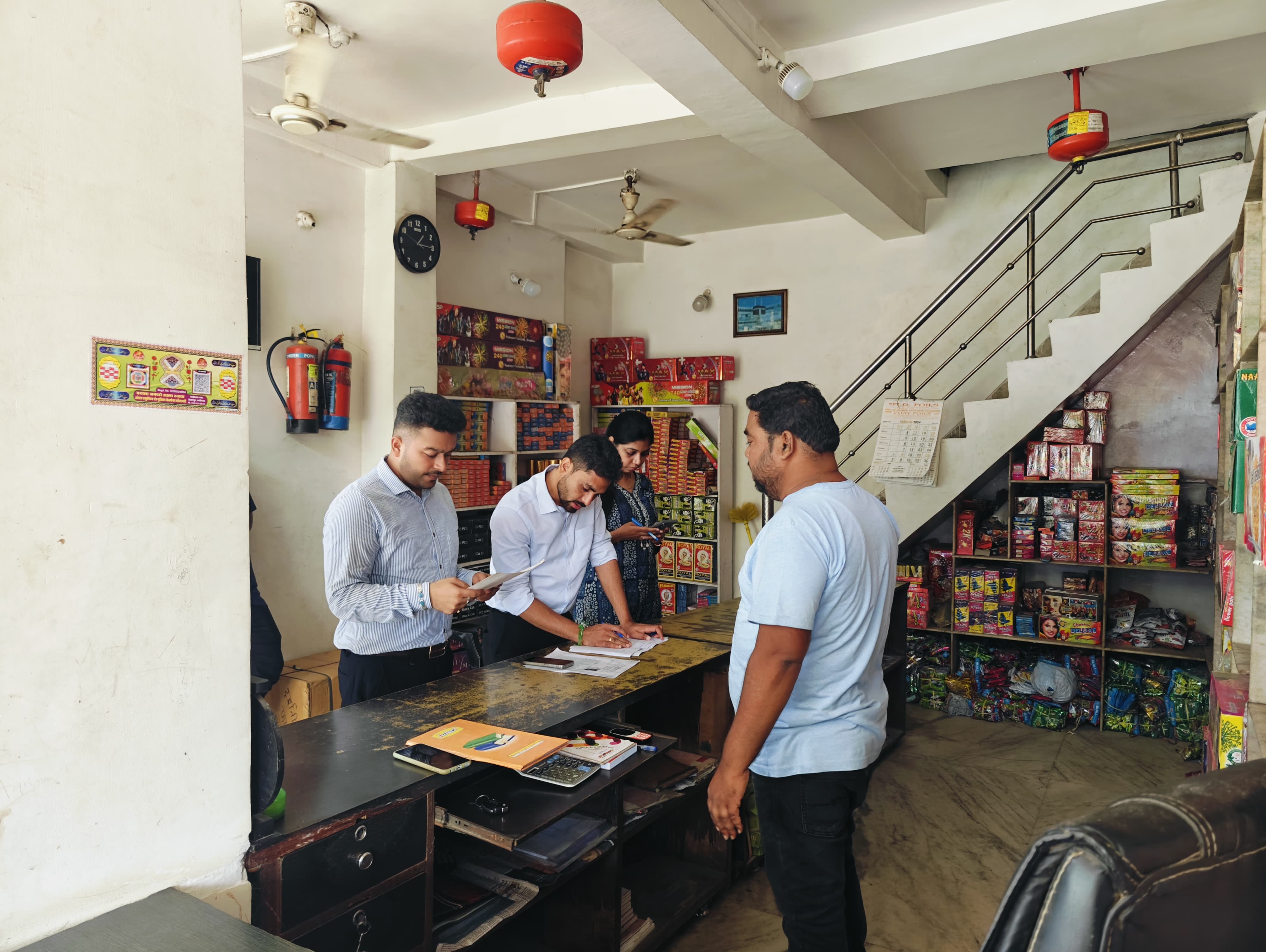 पटाखा दुकानों का तहसीलदार ने किया निरीक्षण