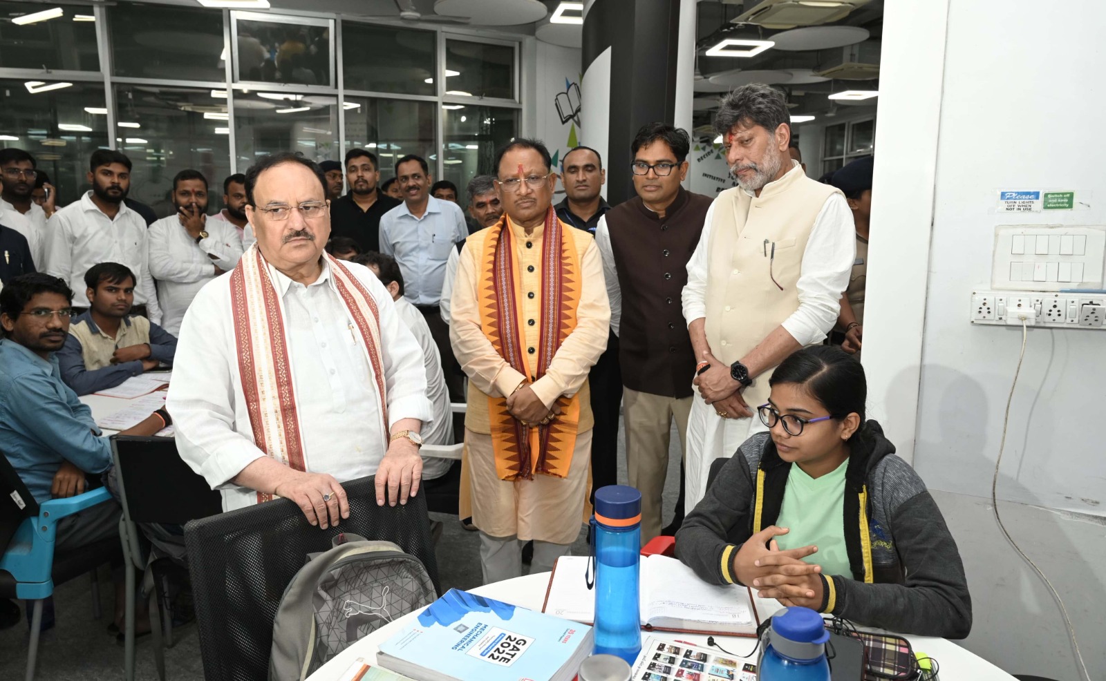 रायपुर । केंद्रीय स्वास्थ्य एवं परिवार कल्याण मंत्री श्री जगत प्रकाश नड्डा रायपुर प्रवास के दौरान आज शाम मुख्यमंत्री श्री विष्णुदेव साय एवं वित्तमंत्री श्री ओ. पी. चौधरी के साथ नालंदा परिसर पहुंचे। उन्होंने वहां लाइब्रेरी में विभिन्न प्रतियोगी परीक्षाओं की तैयारी कर रहे युवाओं से संवाद किया। श्री नड्डा ने यूपीएससी, सीजीपीएससी सहित अन्य भर्ती परीक्षाओं की तैयारी के लिए नालंदा लाइब्रेरी में अध्ययन की हाईटेक सुविधा, बैठक व्यवस्था एवं सकारात्मक वातावरण की तारीफ की। केंद्रीय मंत्री श्री नड्डा ने रायपुर में नालंदा परिसर को उसके नाम के अनुरूप स्थापित करने के लिए मुख्यमंत्री श्री विष्णुदेव साय एवं वित्तमंत्री श्री ओ.पी. चौधरी की सराहना की। श्री नड्डा ने नालंदा लाइब्रेरी से आरएफआईडी के माध्यम से पुस्तक इश्यू होने की प्रक्रिया का अवलोकन किया। उन्होंने युवाओं से संवाद करते हुए उनके द्वारा प्रतियोगी परीक्षा की तैयारियों के बारे में भी जानकारी ली।