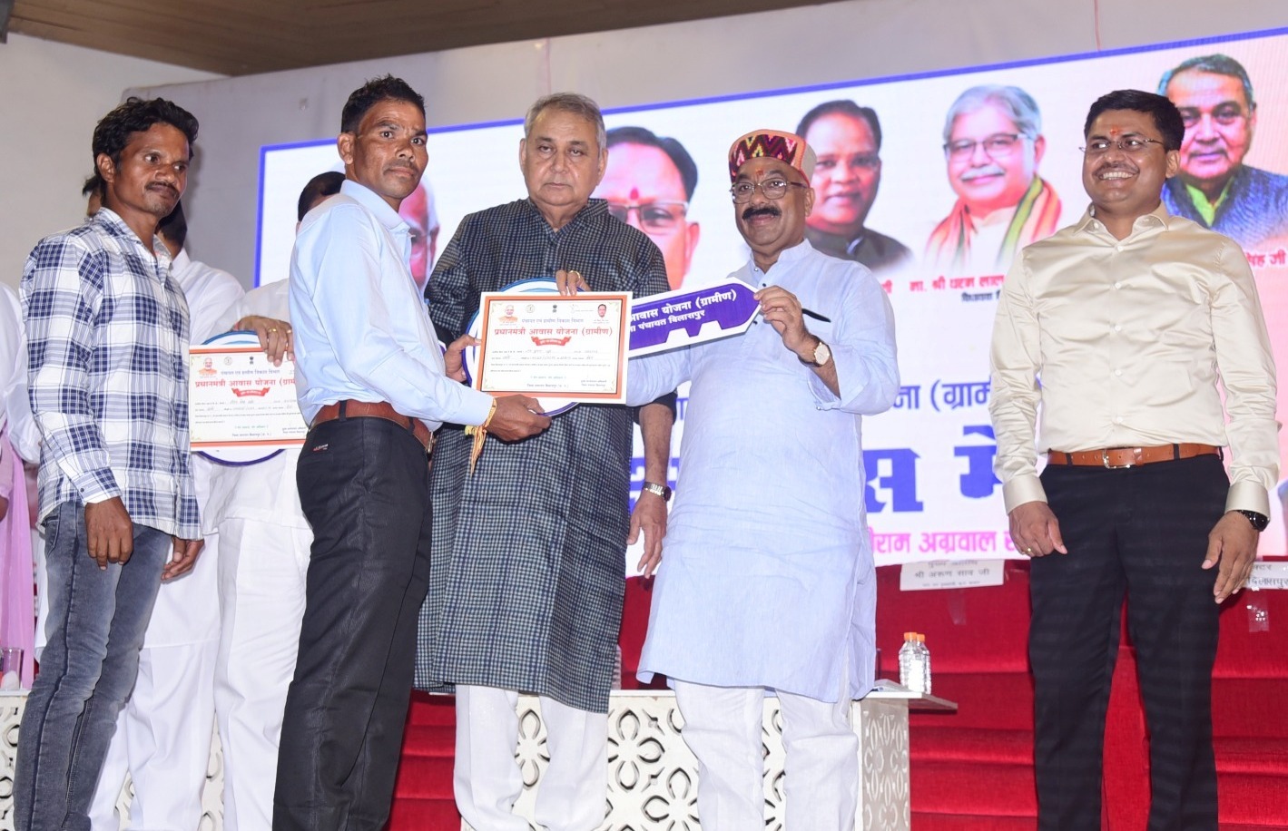 रायपुर । उप मुख्यमंत्री श्री अरुण साव आज बिलासपुर के स्वर्गीय लखीराम अग्रवाल ऑडिटोरियम में आवास मेला में शामिल हुए। उन्होंने जिले के 36 हजार 663 आवासहीन ग्रामीण परिवारों को आवास का स्वीकृति पत्र देकर खुशियों की गारंटी दी। उन्होंने ऐसे हितग्राही जिनके आवास पूर्ण हो चुके हैं, उन्हें प्रतीकात्मक रूप से घर की चाबी भी भेंट की। आज बिलासपुर में प्रधानमंत्री आवास योजना के लाभार्थियों के चेहरों की चमक देखते ही बन रही थी। त्यौहारों के मौसम में उनकी खुशियां दोगुनी हो गईं। विधायक श्री धर्मजीत सिंह भी आवास मेला में शामिल हुए।