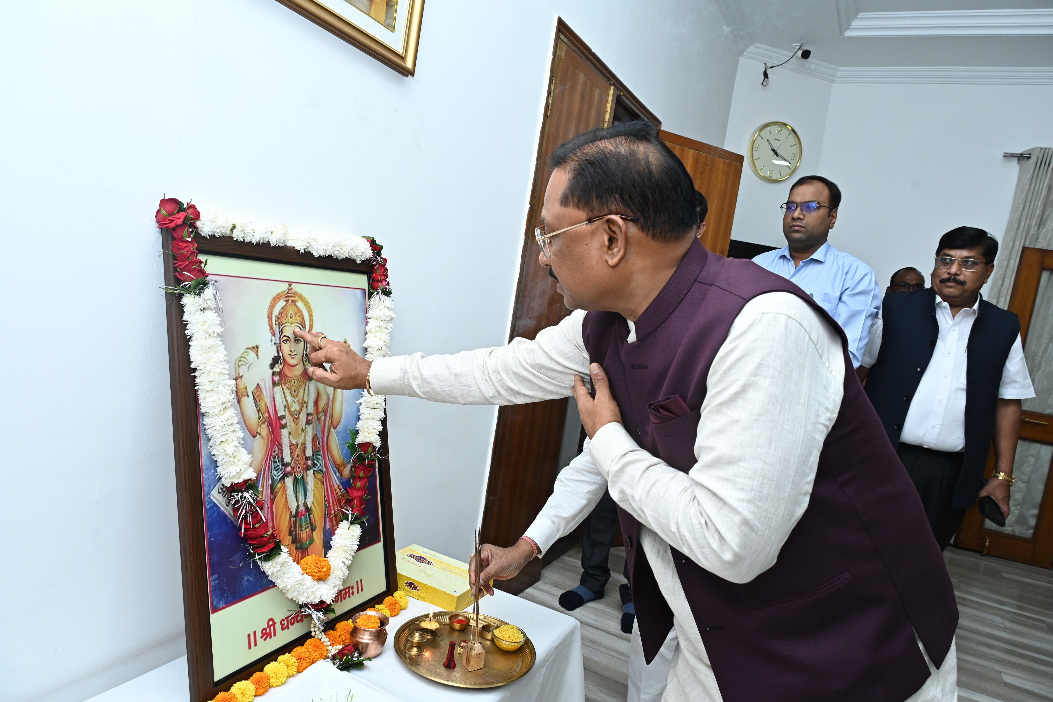 मुख्यमंत्री ने भगवान धन्वंतरि की पूजा अर्चना कर प्रदेशवासियों के लिए माँगा आरोग्य का वरदान