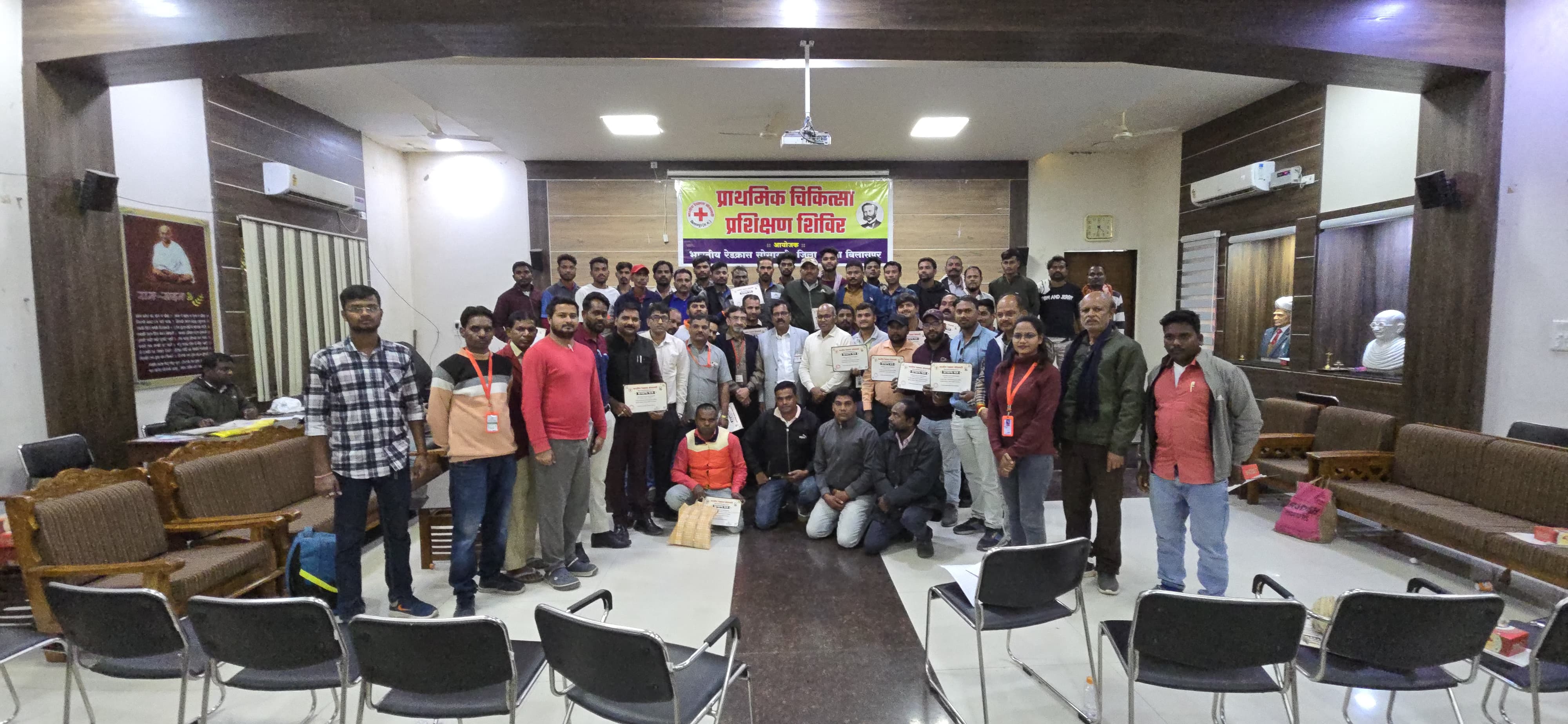 बिलासपुर /भारतीय रेड क्रॉस सोसाइटी बिलासपुर द्वारा प्रार्थना सभाकक्ष में प्राथमिक चिकित्सा प्रशिक्षण शिविर का आयोजन किया गया। प्रथम सत्र में रायपुर से आए प्रशिक्षकों द्वारा स्कूल एवं महाविद्यालय से आए 47 रेड क्रॉस प्रभारी शिक्षकों को सीपीआर एवं अन्य आपदाओं के समय पर प्रभावी ढंग से निपटने के गुर सिखाए गए। दूसरे सत्र में शासकीय वाहन चालकों का प्रशिक्षण आयोजित किया गया। सत्र का प्रारंभ श्री पी के पांडे अतिरिक्त संचालक उच्च शिक्षा के मुख्य आतिथ्य में सर हेनरी ड्यूनॉट की प्रतिमा पर माल्यार्पण एवं दीप प्रज्वलंकर शिविर का उद्घाटन किया गया । साथ में जिला शिक्षा अधिकारी श्री टी आर साहू, डॉक्टर अनिल श्रीवास्तव सचिव रेड क्रॉस सोसाइटी, डॉक्टर एम ए जिकनी नोडल अधिकारी और डॉ बी एल गोयल, श्री अनिल तिवारी एवं श्री सौरभ सक्सेना उपस्थित थे। द्वितीय सत्र में विभागों के 64 शासकीय वाहन चालकों ने प्रशिक्षण प्राप्त किया । रायपुर से आए प्रशिक्षक डॉक्टर यशवंत चंद्राकर एवं श्री बालमुकुंद दुबे ने प्रायोगिक तरीके से प्रशिक्षण कार्यक्रम पूर्ण कराया। इस क्रम में कल 15 दिसंबर को न्यू सर्किट हाउस के सभा कक्ष में प्रथम सत्र में औद्योगिक क्षेत्र के कर्मचारी एवं द्वितीय सत्र में नगर निगम के कछार स्थित कर्मचारियों का प्रशिक्षण आयोजित किया जाएगा। आज के प्रशिक्षण कार्यक्रम का संचालन डॉक्टर आदित्य पांडे ने किया। कार्यक्रम में लक्ष्मी नारायण मिश्रा,सुशील राजपूत,गीतेश्वरी चंद्रा और रचना राय का महत्वपूर्ण सहयोग रहा।