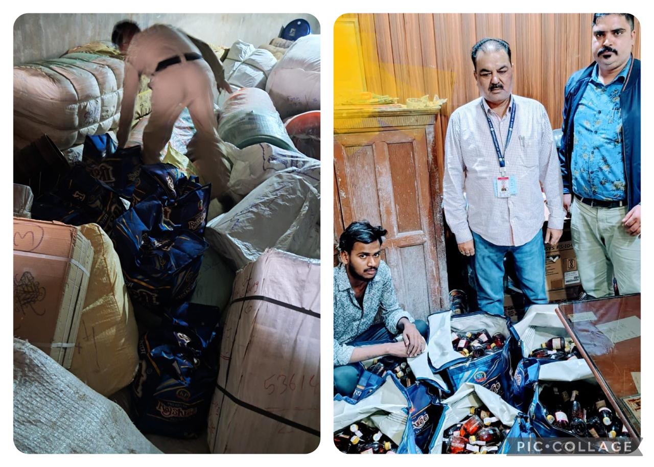 रायपुर । सचिव सह आबकारी आयुक्त सुश्री आर. संगीता एवं कलेक्टर डॉ. गौरव सिंह के निर्देश पर आबकारी विभाग जिला रायपुर द्वारा अवैध मदिरा के विरुद्ध कार्यवाहियाँ जारी हैं । इसी अनुक्रम में गुरु घासीदास जयंती पर घोषित शुष्क दिवस के दिन कंपोजिट देशी मदिरा दुकान गंज थाना गंजपारा के पास आरोपी गिरधर साहू के आधिपत्य के न्यू कांकेर केशकाल गुड्स ट्रांसपोर्ट गैरेज से 480 नग पाव (86.4 बल्क लीटर) देसी मदिरा मसाला , वार्ड क्रमांक 69, साईं नगर थाना डीडी नगर निवासी रेशमा महानंद सागर से 168 नग पाव (30.24 बल्क लीटर) देसी मदिरा मसाला मदिरा एवं कंपोजिट देशी मदिरा दुकान गंजपारा थाना गंजपारा के पास लावारिस हालत में 55 नग पाव (9.9 बल्क लीटर) देशी मदिरा मसाला जप्त की गई । छत्तीसगढ़ आबकारी अधिनियम 1915 की धारा 34(2) 59(क) के प्रकरण कायम किए गए एवं आरोपियों को जेल दाखिल किया गया। उल्लेखनीय है कि लगातार शिकायत प्राप्त हो रही थी कि शुष्क दिवस में कुछ लोगों द्वारा अवैध मदिरा विक्रय किया जा रहा है। उपरोक्त कार्यवाही में सहायक जिला आबकारी अधिकारीगण अल्ताफ खान, डीडी पटेल,वैभव मित्तल, टेक बहादुर कुर्रे एवं उपनिरीक्षक गण प्रकाश देशमुख, कौशलकिशोर सोनी, अनुला झाड़े का महत्वपूर्ण योगदान रहा।