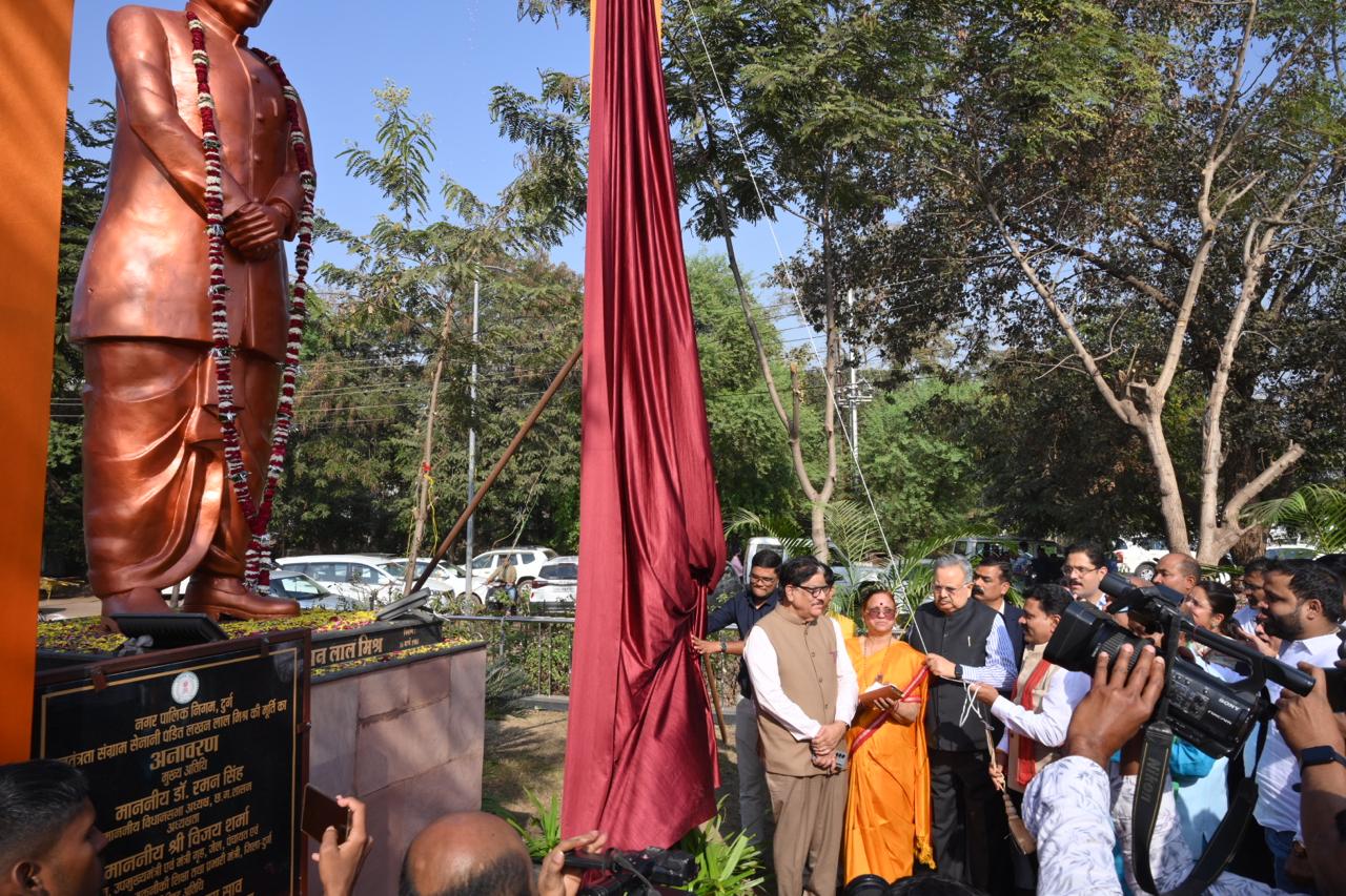 दुर्ग / मुख्य अतिथि छत्तीसगढ़ विधानसभा अध्यक्ष डॉ. रमन सिंह व अति विशिष्ट अतिथि उप मुख्यमंत्री श्री विजय शर्मा के आतिथ्य में आज नगर पालिक निगम दुर्ग सीमा क्षेत्र अंतर्गत सर्किट हाउस के समीप त्याग और समर्पण के प्रतीक प्रख्यात स्वतंत्रता सेनानी पंडित लखनलाल मिश्र के प्रतिमा का अनावरण किया गया। इस अवसर पर स्वतंत्रता सेनानी के जीवन पर आधारित किताब का विमोचन भी किया गया।