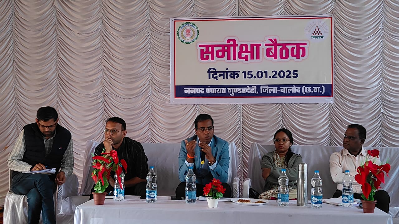 बालोद/जिला पंचायत बालोद के मुख्य कार्यपालन अधिकारी डॉ. संजय कन्नौजेे ने गुण्डरदेही विकासखंड में राष्ट्रीय ग्रामीण आजीविका मिशन बिहान के अंतर्गत चल रहे कार्यों की समीक्षा की। बैठक में बिहान के सभी घटकों की समीक्षा करते हुए बिहान के कार्यों के निर्धारित समयावधि पर गुणवत्तापूर्ण क्रियान्वयन एवं लक्ष्य पूर्ति के विस्तारपूर्वक निर्देश दिए। उन्होंने बिहान योजना में सीएलएफ के महत्वपूर्ण भूमिका को रेखांकित करते हुए सभी क्लस्टर में भवन, ऑफिस सेटप, इंटरनेट की व्यवस्था एवं क्लस्टर कार्यालय प्रतिदिवस संचालित करने के निर्देश दिए।