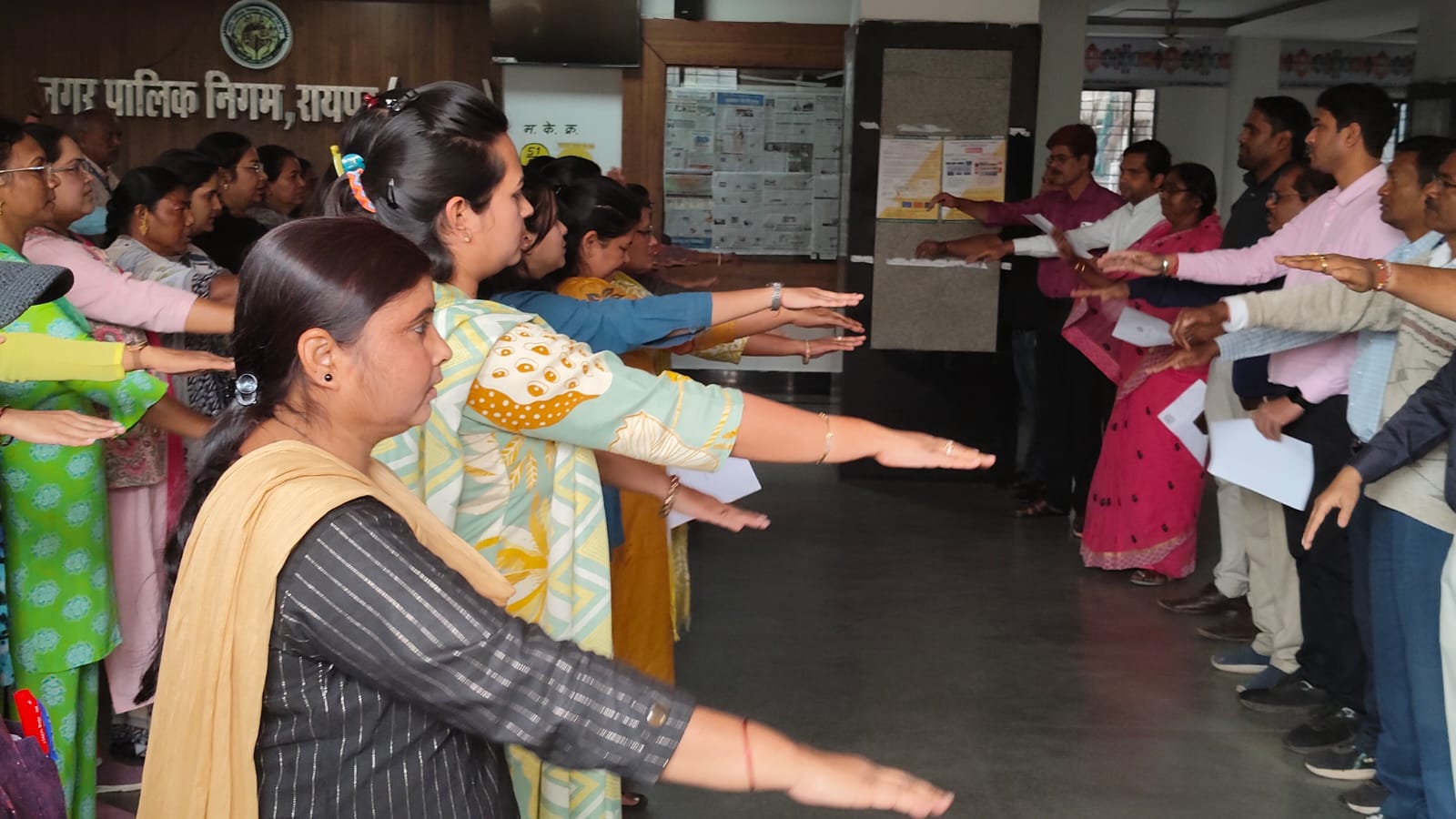 नगर निगम मुख्यालय में आयुक्त श्री अबिनाश मिश्रा ने निगम अधिकारियों, कर्मचारियों को मतदान की शपथ दिलवाई