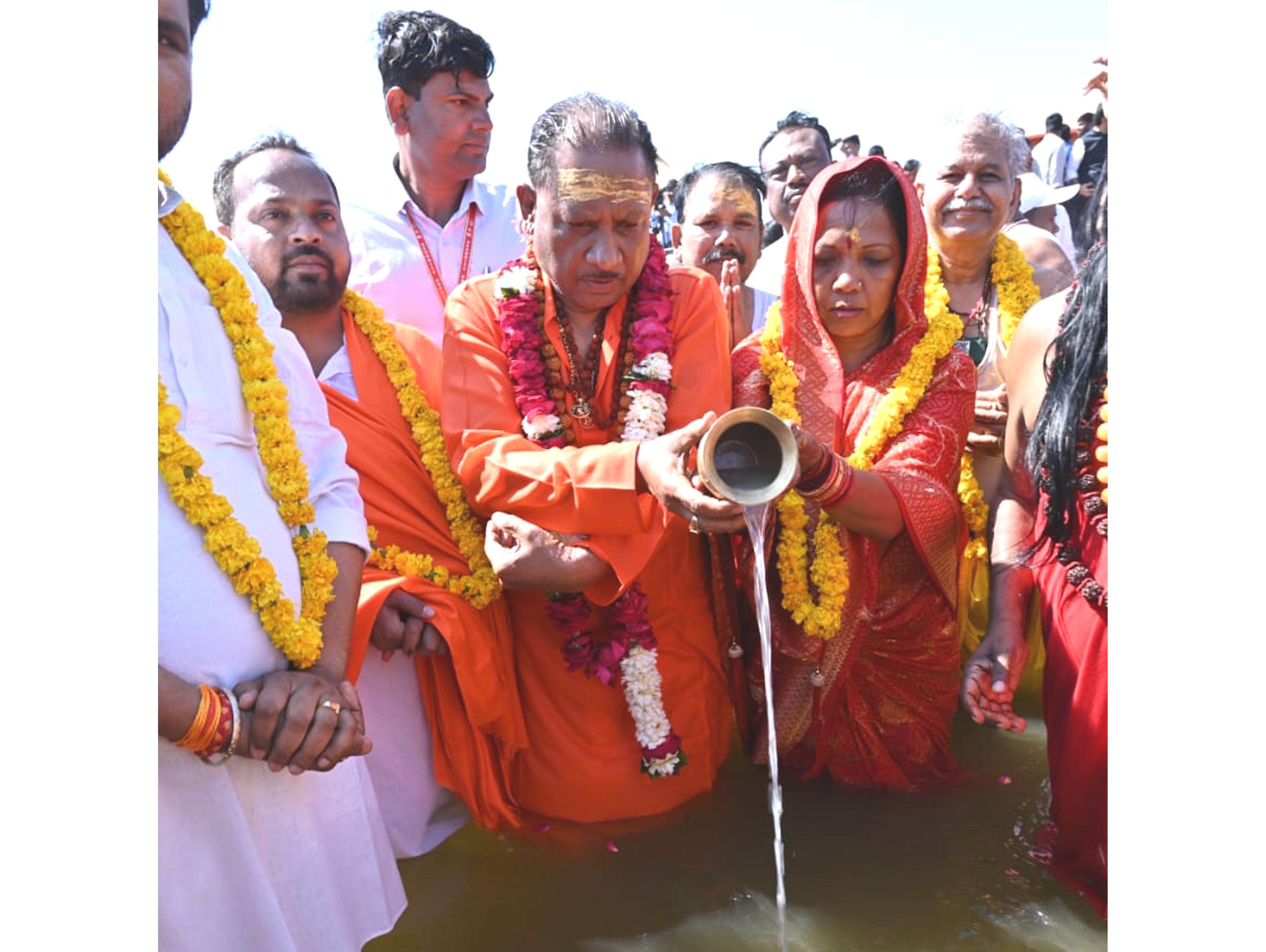 मुख्यमंत्री ने तीर्थराज प्रयाग के त्रिवेणी संगम में पुण्य स्नान कर प्रदेशवासियों के सुख-समृद्धि की कामना की
