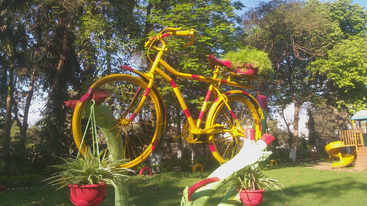 भिलाई/नगर पालिक निगम भिलाई द्वारा स्वच्छ सर्वेक्षण में हमारा भिलाई शहर अव्वल आए। इसलिए विभिन्न प्रकार की स्वच्छता की गतिविधियों की जा रही है। इसी तारतम में नगर निगम भिलाई के कुसुम कानून उद्यान में कबाड़ में पड़ी साइकिलों को आकर्षक बनाकर के सेल्फी जोन बनाया गया है। जो सबके लिए आकर्षण का केंद्र बना हुआ है। वही साइकिल है जिसे हम चलाएं, जब पुरानी हो गई तो उसे हम फेंक दिए। नगर निगम भिलाई उसी का एक मॉडल बना करके आपके सामने सेल्फी जोन के रूप में निर्मित किया है। स्वच्छ भारत अभियान में प्रमुख चौक चौराहों पर नगर निगम भिलाई द्वारा डस्टबिन रखा जा रहा है।